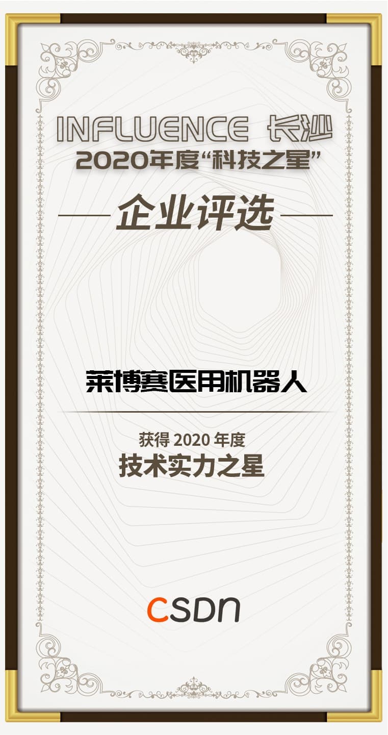萊博賽醫(yī)用機(jī)器人獲得2020年度技術(shù)實(shí)力之星 -