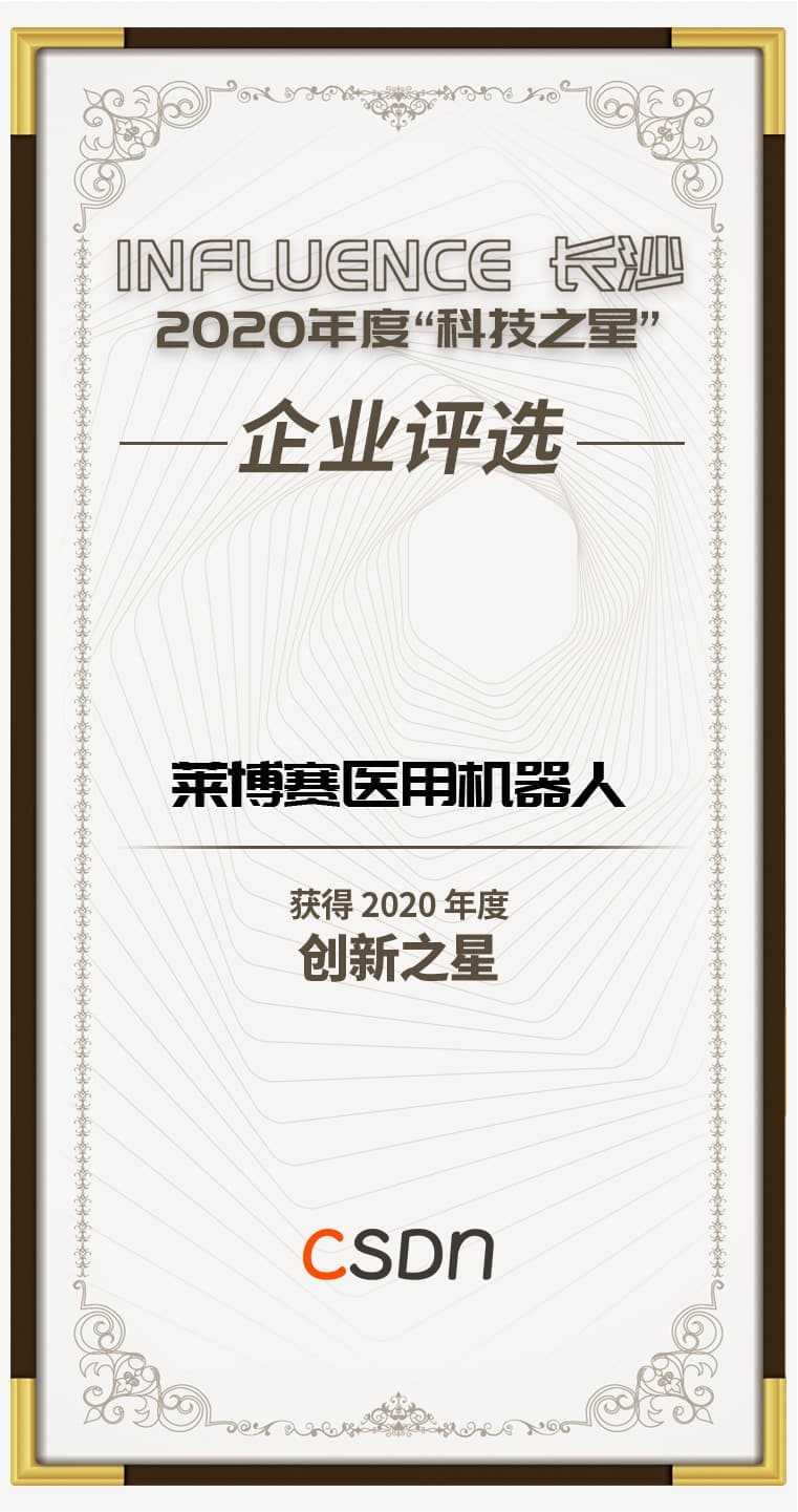 萊博賽醫(yī)用機(jī)器人獲得2020年度創(chuàng)新之星